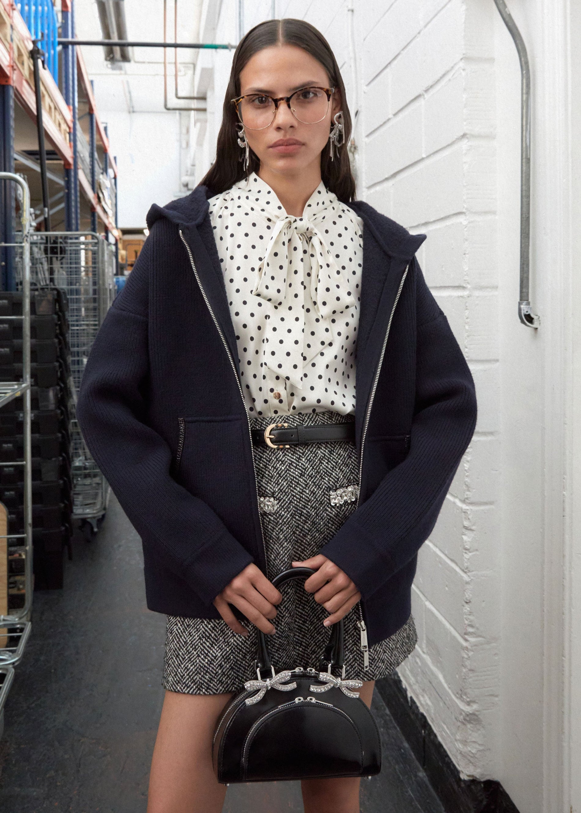 Navy Knit Diamante Trim Hoodie