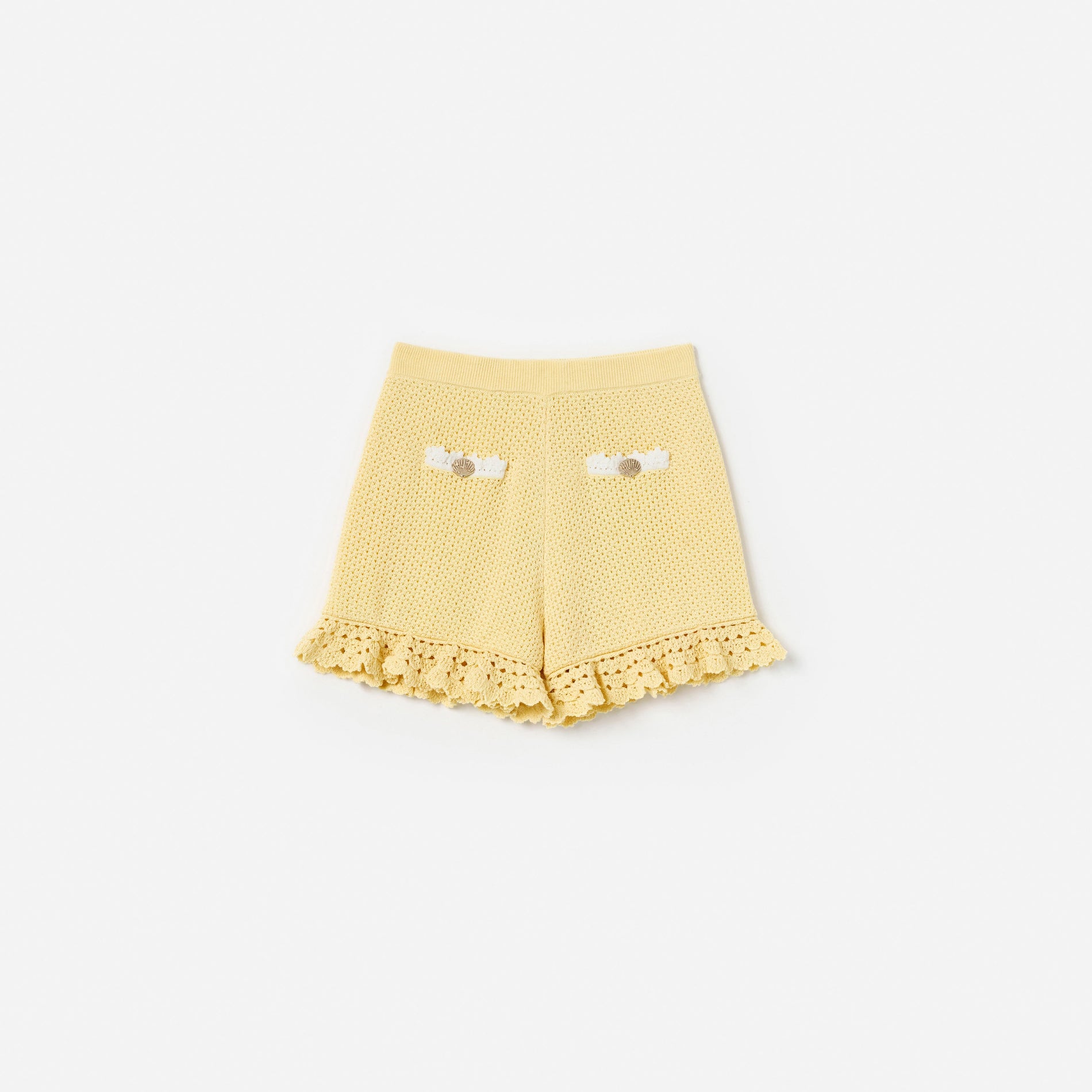 Yellow Pointelle Knit Shorts