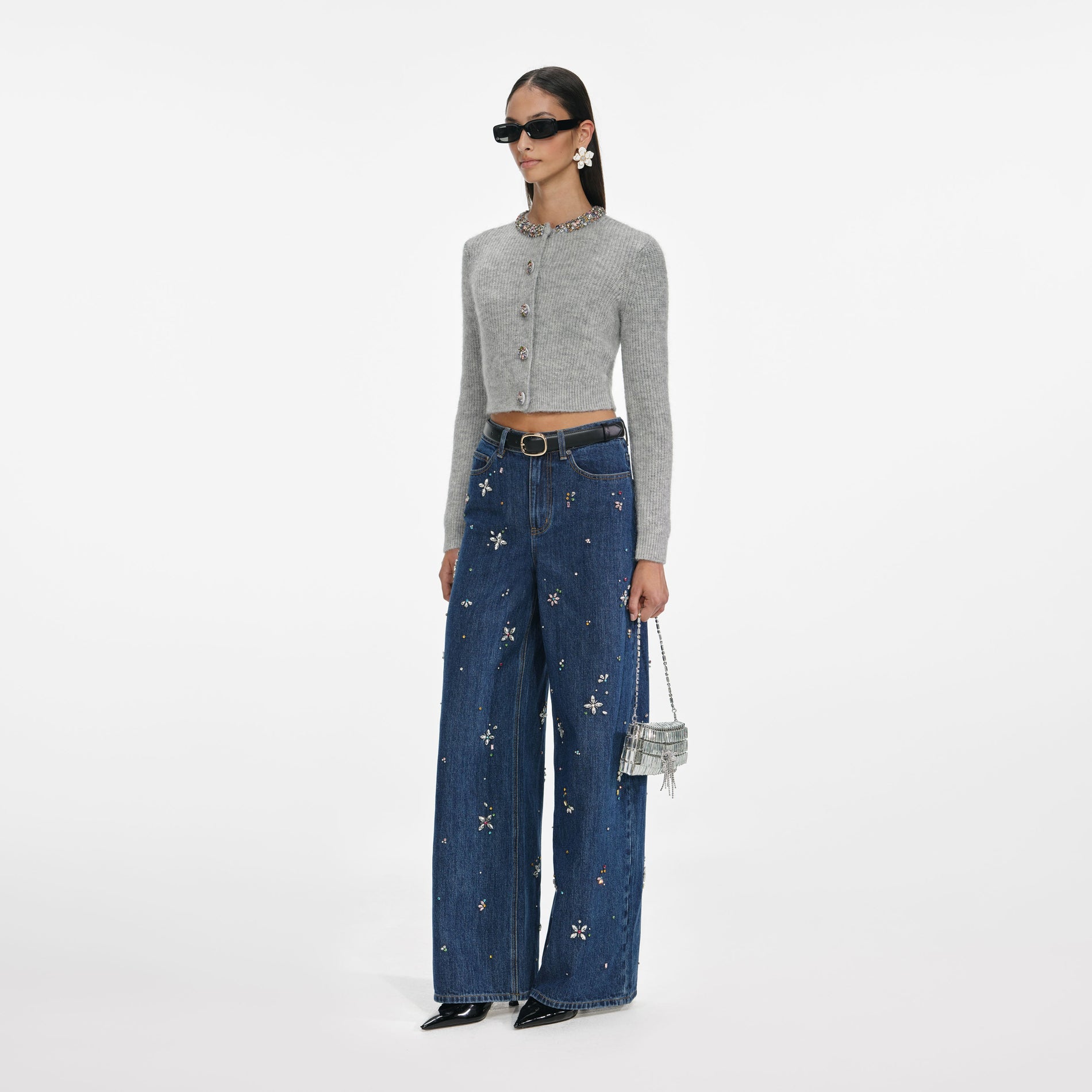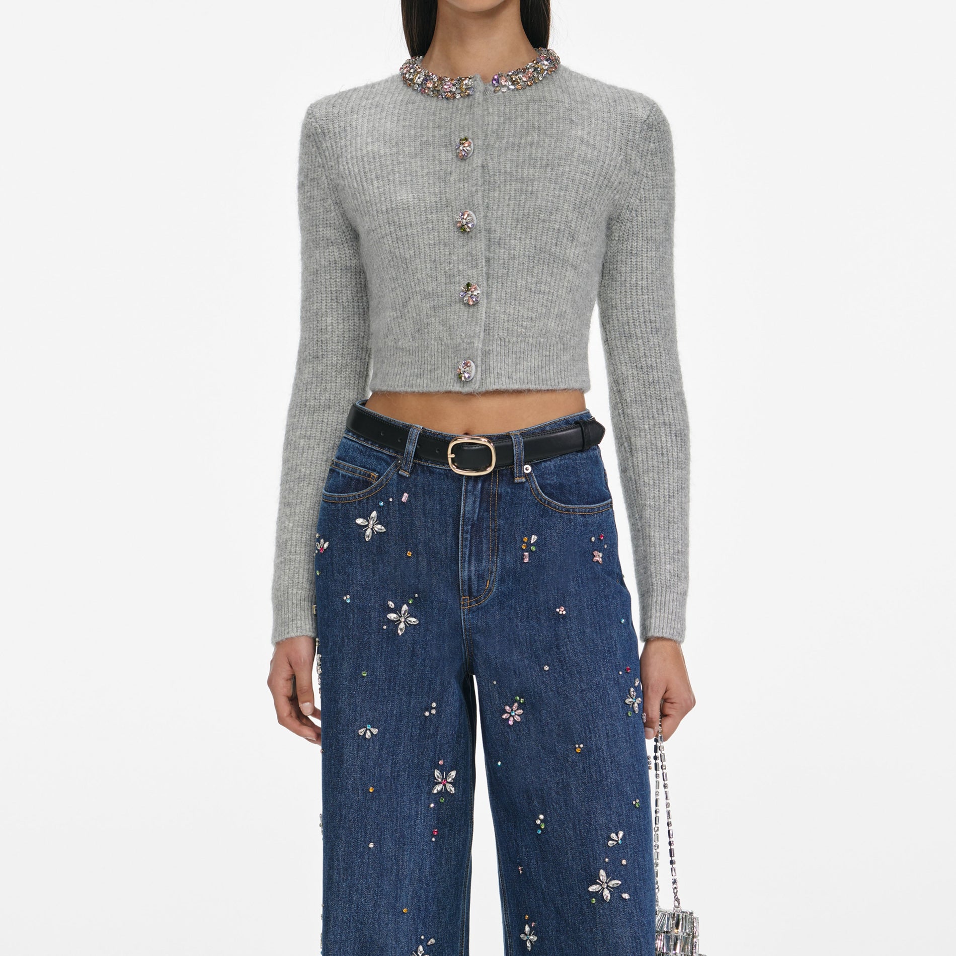 Charcoal Crystal Trim Cardigan
