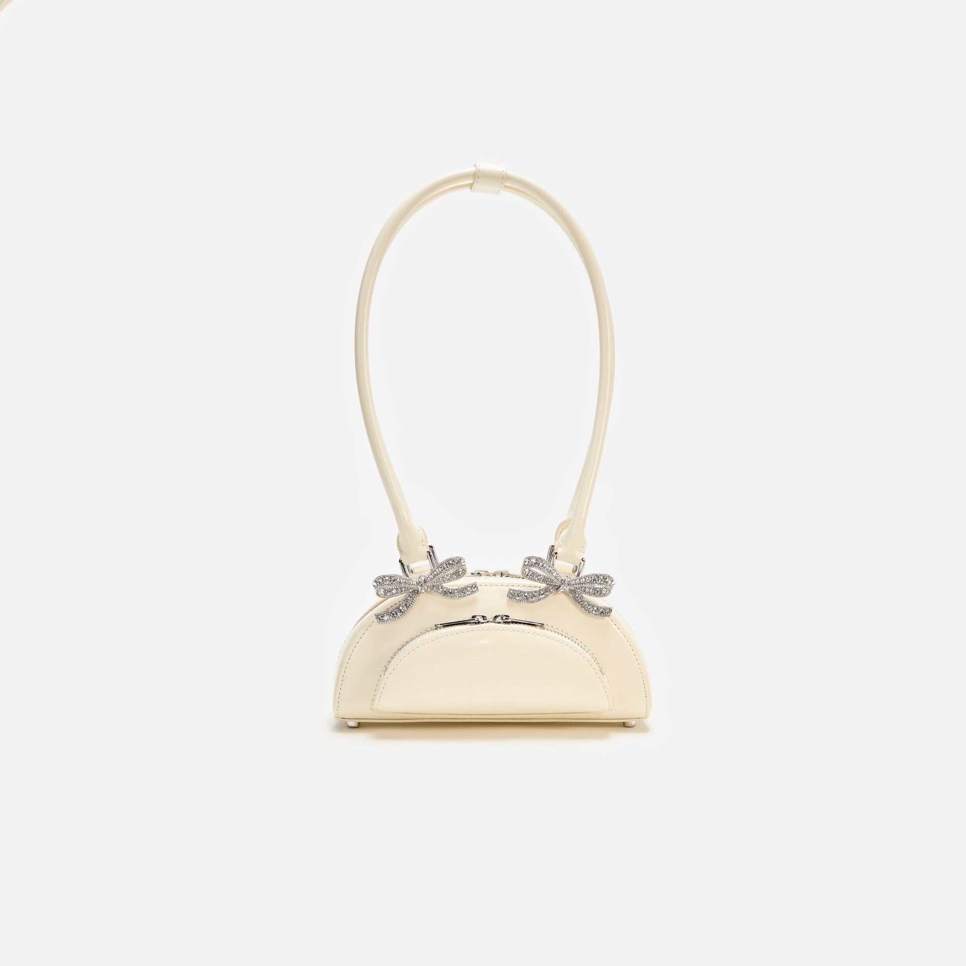 Cream Leather Curved Mini Shoulder Bag
