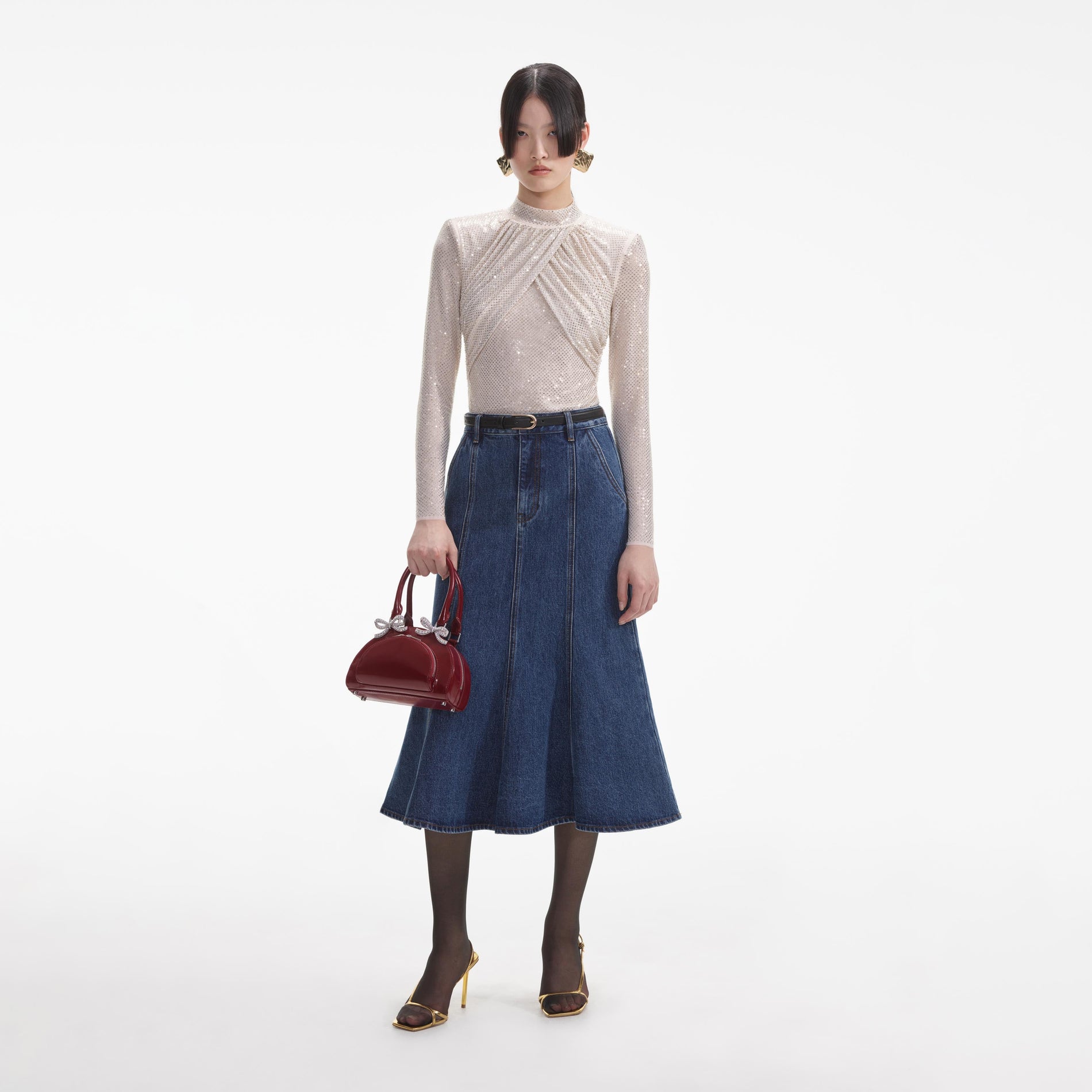 Cream Denim Midi Skirt