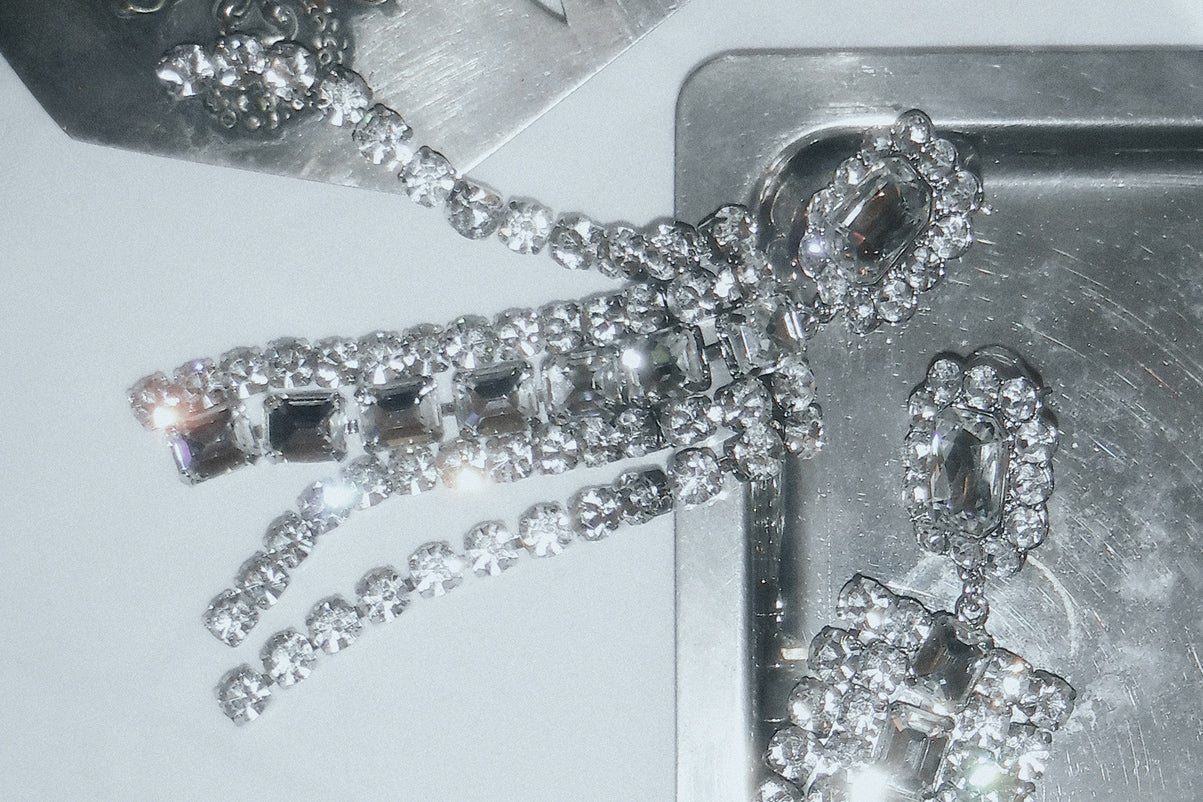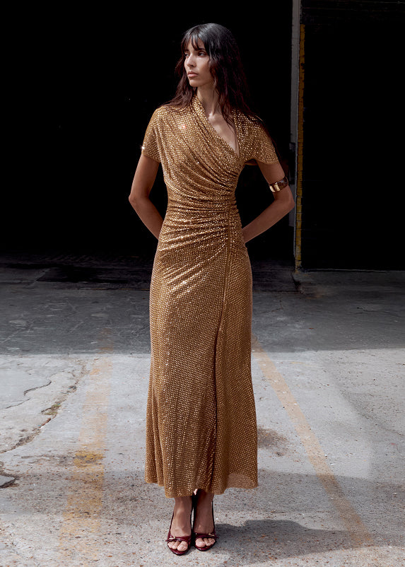 Light-reflecting rhinestones meet dreamy lace in this timeless number, which has a face-framing mock neck and body-skimming silhouette. Pair with statement earrings and heels for the big day.