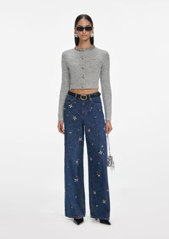 Snuggle up in luxury with this super soft brown alpaca cardigan, which boasts multi-coloured diamanté trims and sparkling buttons to boot. Style with high-waisted jeans and pleated minis alike.