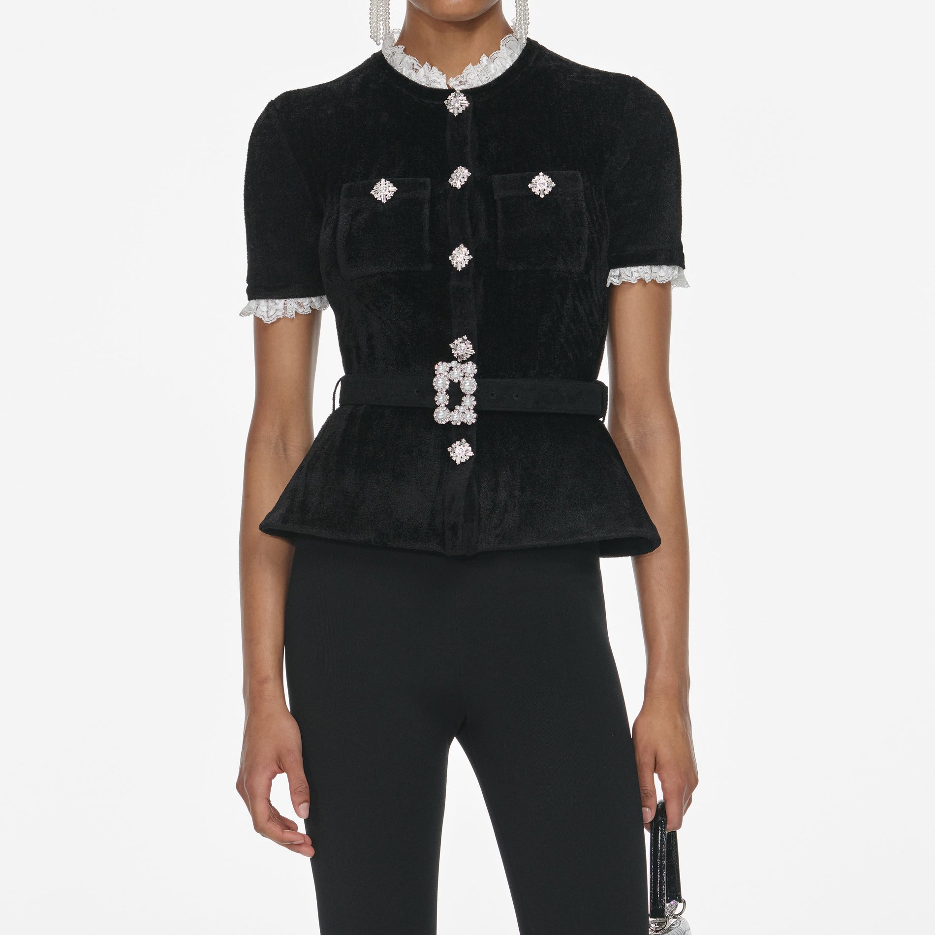 - Asymmetric button closure at front