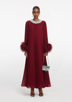 Embrace drama in this head-turner, cut from burgundy pleated chiffon for a voluminous yet lightweight feel. Accessories come included, with the diamanté-trimmed keyhole and elegant feather cuffs.